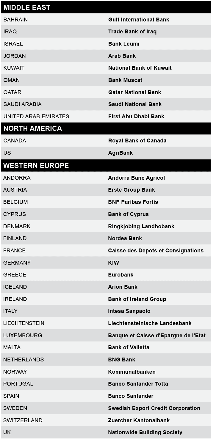 Global Finance’s annual rankings of the World’s Safest Banks have been the recognized and trusted standard of financial counterparty safety for more than three decades. Winners were selected through an evaluation of long-term foreign currency ratings—from Moody’s, Standard & Poor’s and Fitch—of the 1000 largest banks worldwide.