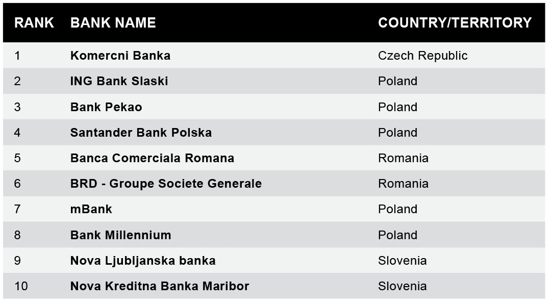 Komercni Banka of the Czech Republic maintains its #1 position for 2023, and Polish banks performed well again, taking three of the top five positions this year and five total.