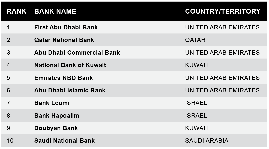 Banks from the UAE performed well this year, taking four of the top six positions, with First Abu Dhabi Bank remaining in the top spot again for 2023.