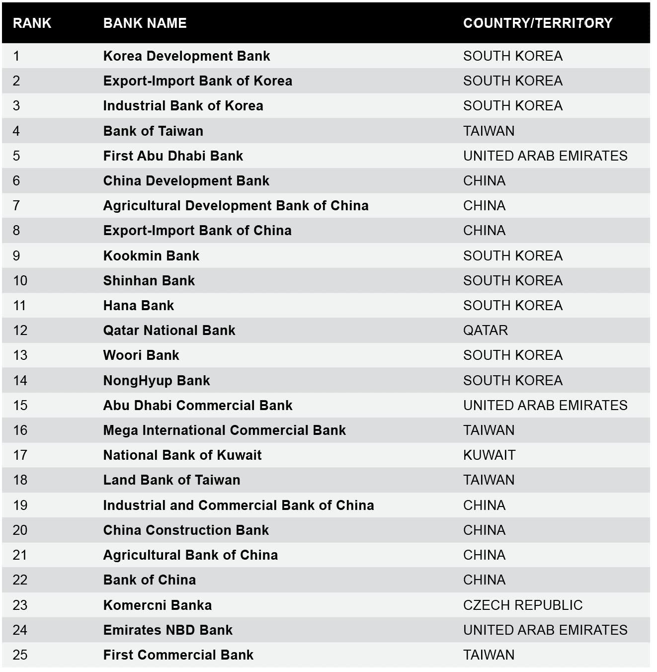 Global Finance’s annual rankings of the World’s Safest Banks have been the recognized and trusted standard of financial counterparty safety for more than three decades. Global Finance evaluates the ratings and total assets of the main players in developing economies to create the rankings—providing an overview of the key banks in each region and which financial institutions offer the greatest security. Banks were selected through an evaluation of long-term foreign currency ratings—from Moody’s, Standard & Poor’s and Fitch Ratings—of the 500 largest banks in the world.