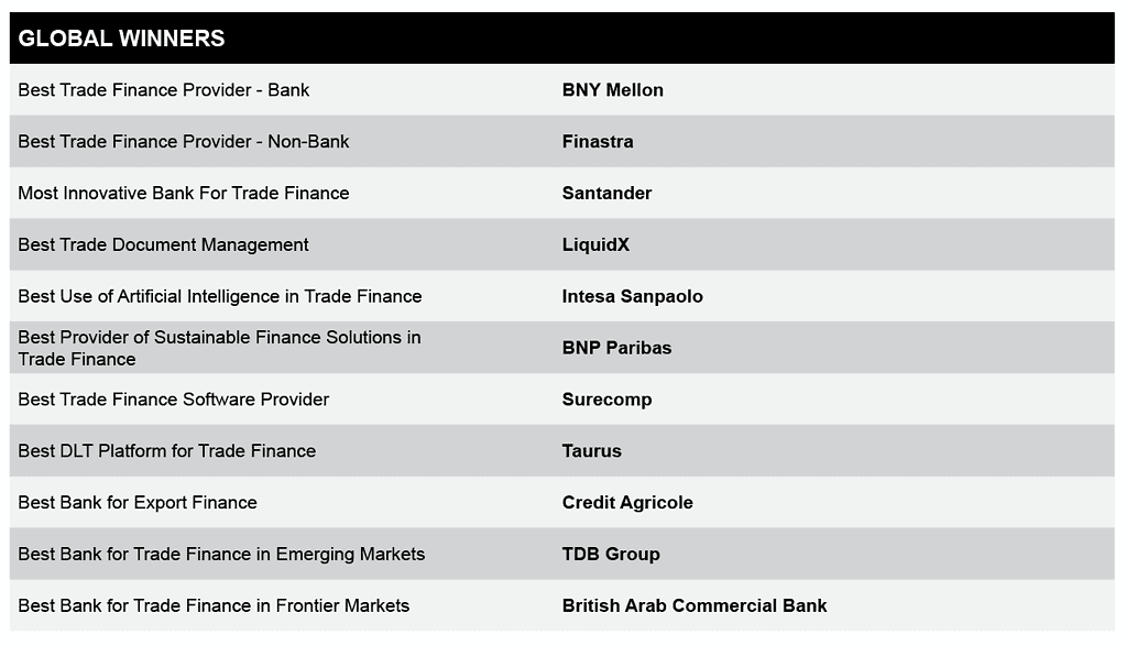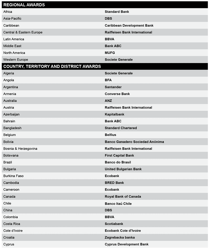 The full list of the 2024 World’s Best Trade Finance Providers follows.